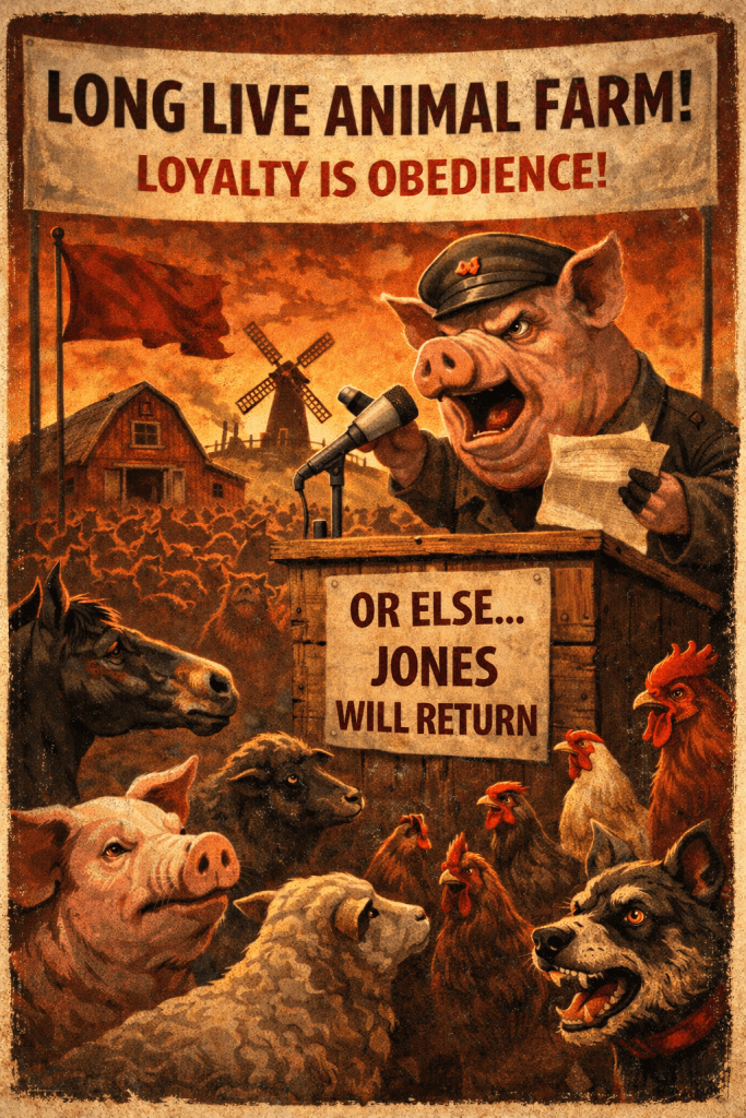 The function It does not stay flat because the ignorance is followed by memory or history erasure, where the pigs rewrite the past. This erasure constantly increases ignorance rather than stabilizing or compounding it.